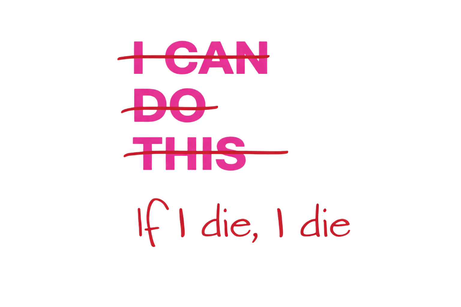 Make a bold statement with this sassy glitter DTF transfer featuring “I CAN / DO / THIS” crossed out and replaced with “If I die, I die.” Printed in vibrant pink glitter with a hand-drawn strike-through effect, this design is perfect for those who embrace humor, sarcasm, and unapologetic confidence.